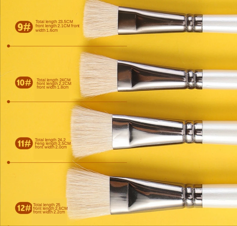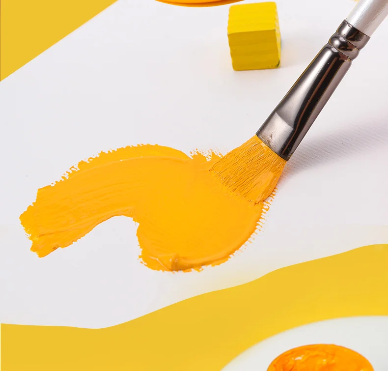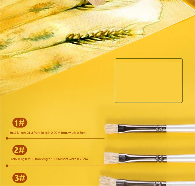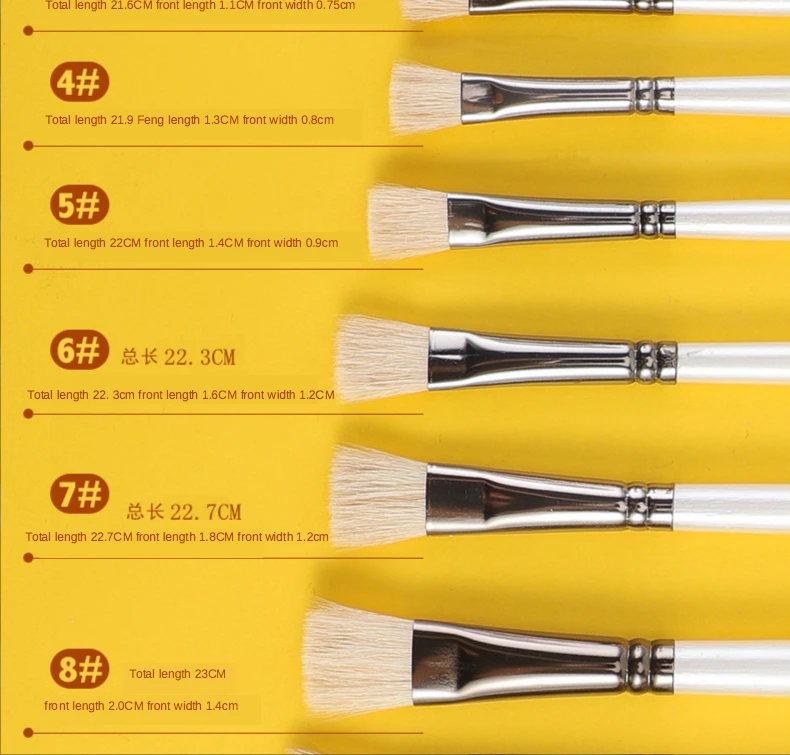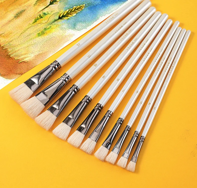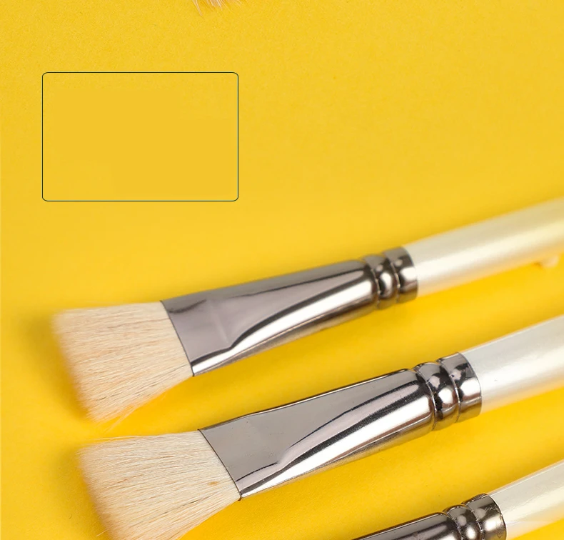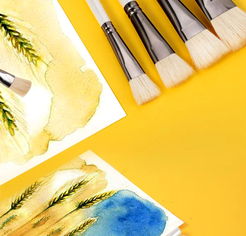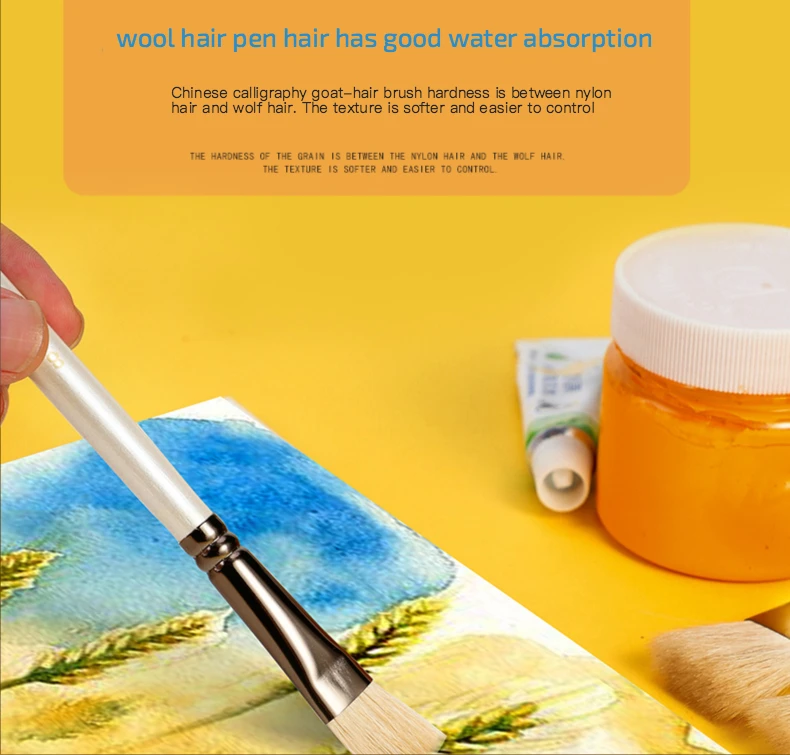 6 pcs Short rod flat head wool set watercolor oil brush soft hair painting brush children's beginner set student art paint brush