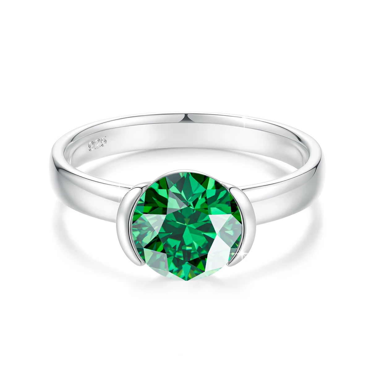 8mm Lab Grown Emerald Ring 925 Sterling Silver Round Cut for Women Men Colorful Rings Engagement Wedding Fine Jewelry