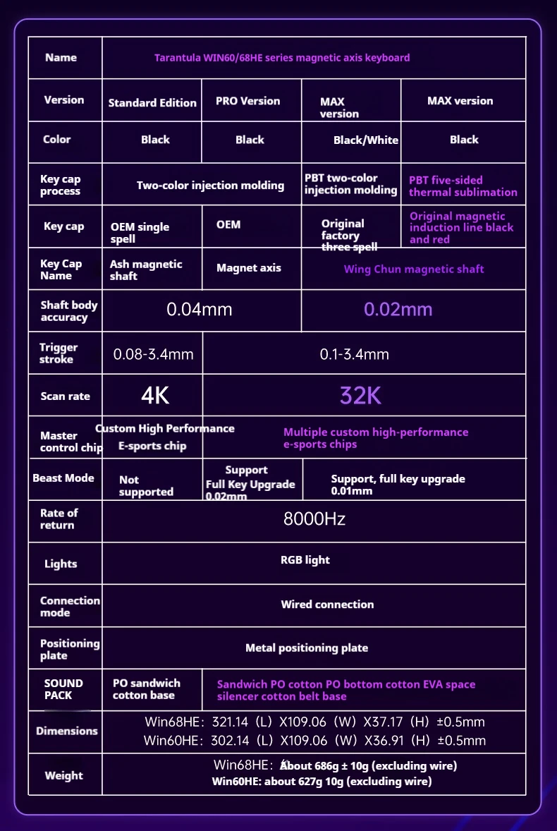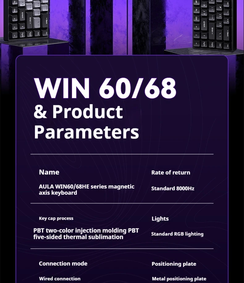 AULA WiN60/68 HE PRO MAX Mechanical Keyboard Magnetic Switch RT Gaming Esport Valorant Custom Wired 1600 RGB 0.01mm 8kHz 0.02mm