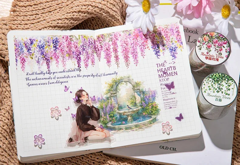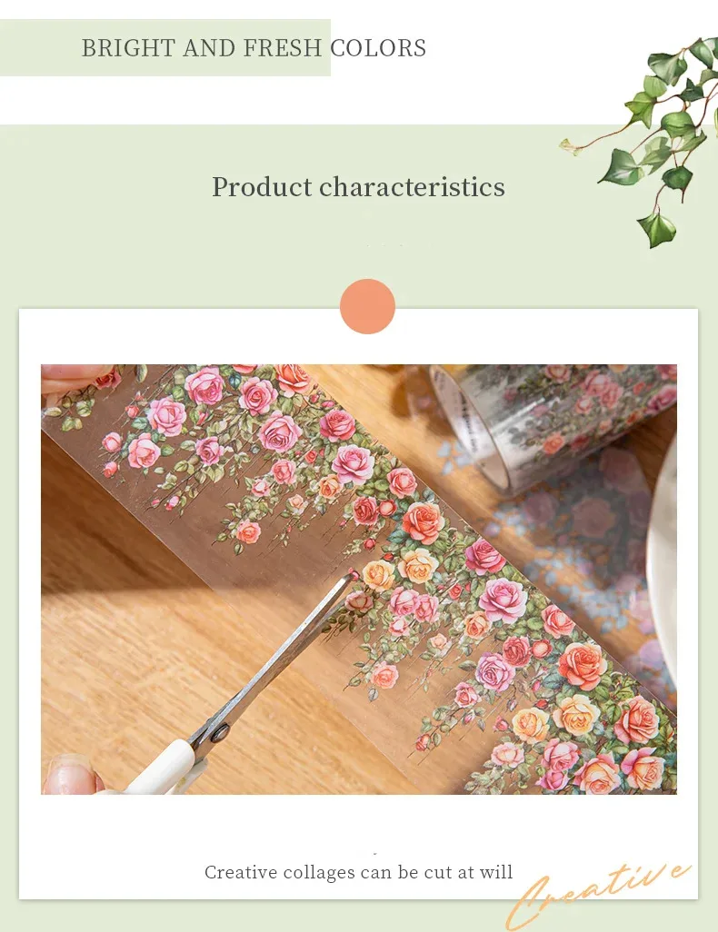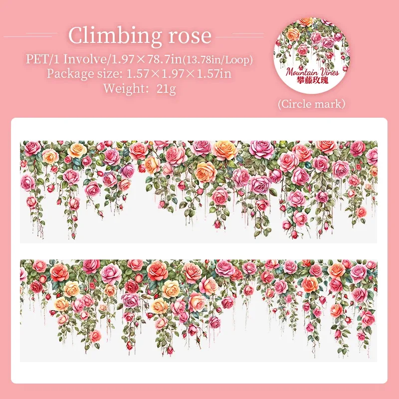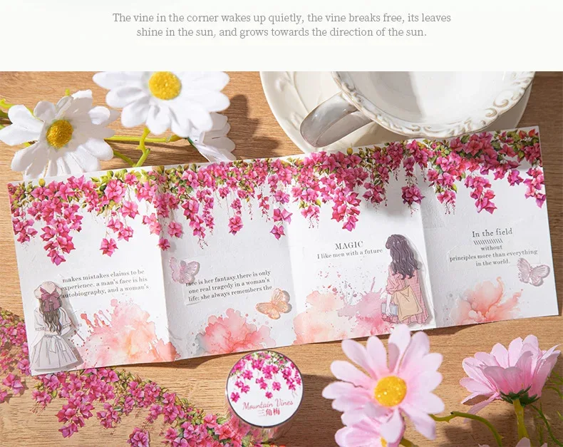 JIANWU 50mm*200cm Mountain Vines Series Vintage Plant Flower Landscaping Material Collage PET Tape Creative Journal Stationery