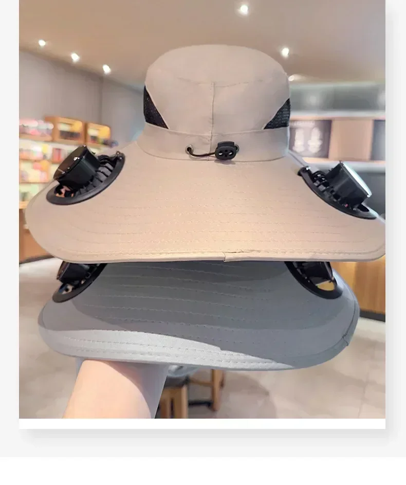 Multifunction Double Fan Solar Hat UV Protection Breathable Fisherman Cap Summer Outdoor Rechargeable Sun Fan Gift for Father